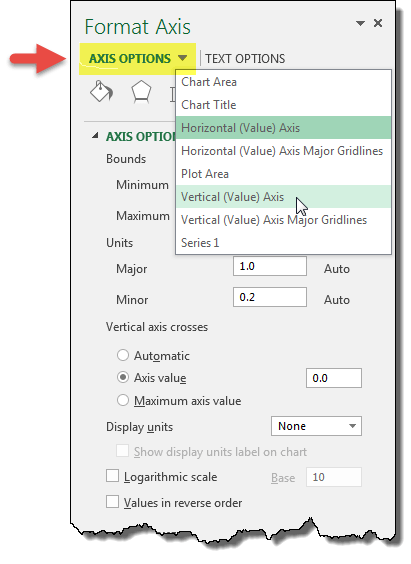 - Select Series Options > Horizontal (Value) Axis. This will display the Format Axis task pane