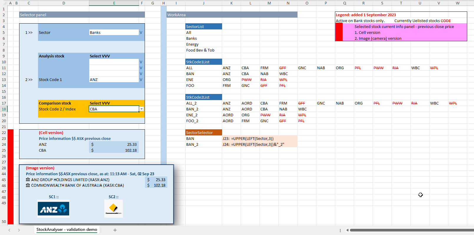 Refers to: ='StockAnalyser - validation demo'!$K$11:$V$11 - 3.2 BAN_Code_1,