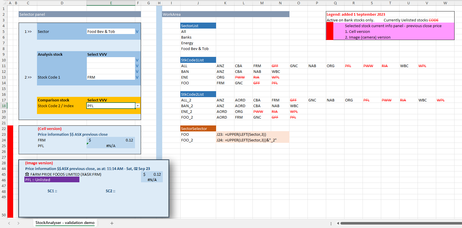 Refers to: ='StockAnalyser - validation demo'!$K$13:$N$13 - 3.4 FOO,