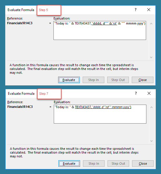 (figure 1 formula evaluation step 5) [returns]"dddd, d""rd"& """ mmmm yyyy"