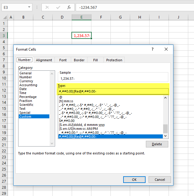' ======================================= Sub TrailingMinusNumbers() Dim Num(1 To 12, 1 To 2) As Variant Num(1, 1) = "123.45-": Num(1, 2) = TypeName(Num(1, 1)) ' Returns: 123.45-: "String" Num(11, 1) = VBA.IsNumeric("123.45-"): Num(11, 2) = TypeName(Num(11, 1)) ' Returns: True: "Boolean" Num(12, 1) = VBA.Val("123.45-"): Num(12, 2) = TypeName(Num(12, 1)) ' Returns: 123.45: "Double" ' 1. Type conversion with mathematical operators === Num(2, 1) = "123.45-" / 1: Num(2, 2) = TypeName(Num(2, 1)) ' Returns: -123.45: "Double" Num(3, 1) = "123.45-" * 1: Num(3, 2) = TypeName(Num(3, 1)) ' Returns: -123.45: "Double" Num(4, 1) = --"123.45-": Num(4, 2) = TypeName(Num(4, 1)) ' Returns: -123.45: "Double" ' 2. Type conversion and format functions === Num(5, 1) = VBA.CDbl("123.45-"): Num(5, 2) = TypeName(Num(5, 1)) ' Returns: -123.45: "Double" Num(6, 1) = VBA.CSng("123.45-"): Num(6, 2) = TypeName(Num(6, 1)) ' Returns: -123.45: "Single" Num(7, 1) = VBA.CDec("123.45-"): Num(7, 2) = TypeName(Num(7, 1)) ' Returns: -123.45: "Decimal" Num(8, 1) = Application.Sum("123.45-"): Num(8, 2) = TypeName(Num(8, 1)) ' Returns: Error 2015: "Error" Num(9, 1) = VBA.Format(-123.45, "#,##0.00;#,##0.00-"): Num(9, 2) = TypeName(Num(9, 1)) ' Returns: 123.45-: "String" ' The semicolon (;) distinguishes the positive and negative formats Num(10, 1) = DemoTM.TrailingMinus(-123.45): Num(10, 2) = TypeName(Num(10, 1)) ' Returns: 123.45-: "String" Stop End Sub ' ======================================= Private Function TrailingMinus(ByVal Num As Double) As String If Num < 0 Then TrailingMinus = Format(Abs(Num), "#,###.####-") ' Maximum number of decimal places (4 in this example) is set by trailing hash (#) characters Else ' Better to use the format function - see Num(9) - with argument "#,###.####;#,###.####-" TrailingMinus = Num End If End Function